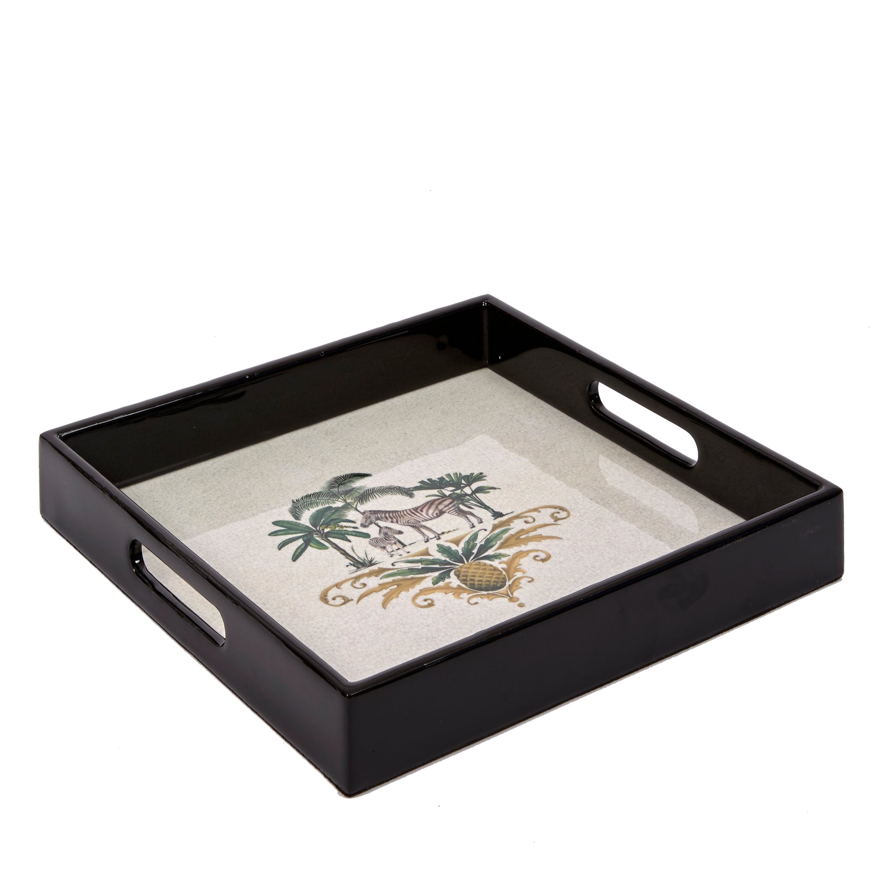 The sophisticated, antique-style butler’s tray makes the perfect present and is one of our best-selling pieces. Lacquered and featuring one of two beautiful designs, Zebra or Elephant, this square tray is ideal for cocktail hour.