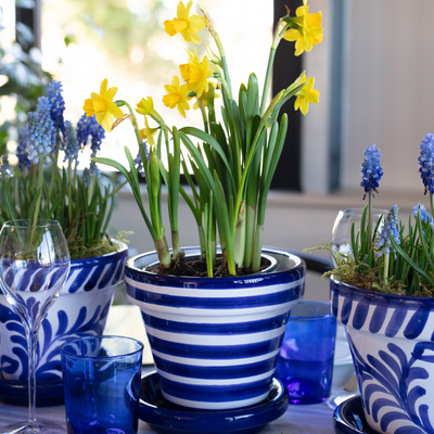 Handpainted Portuguese Planters Striped pattern in Cobalt Blue