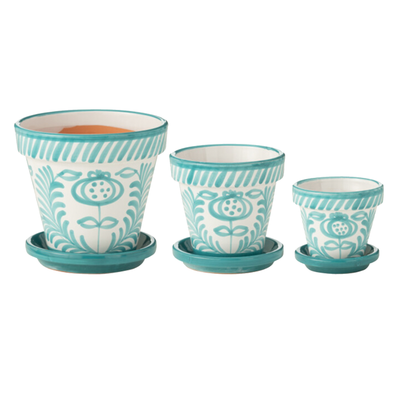 Handpainted Portuguese Planters Floral pattern in Turquoise