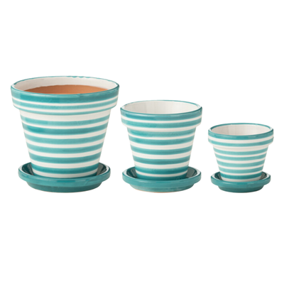 Handpainted Portuguese Planters Stripped Design in Turquoise