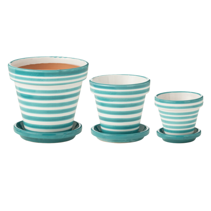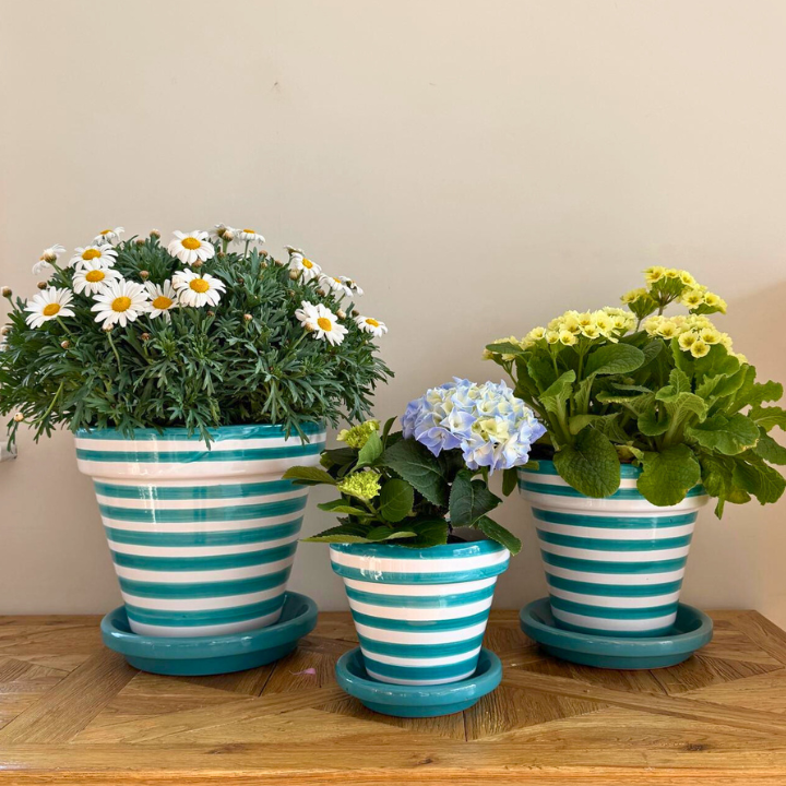 To celebrate Spring we are delighted to announce the arrival of these fabulous new ceramic planters in this stripe pattern in Turquoise.